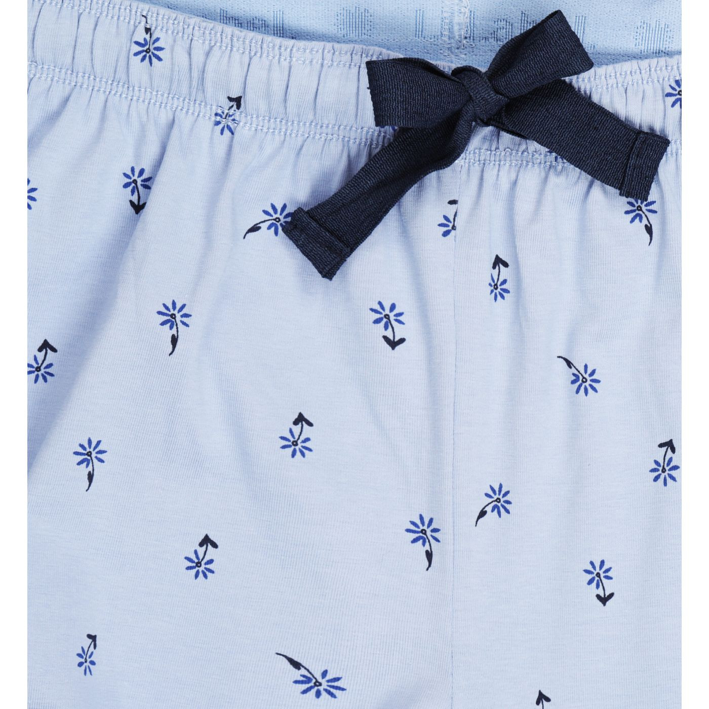 Stylish and sweet, the Bluebell Spots Sleepwear Set features a short-sleeve button-up top with matching shorts in a soft blue leopard print.