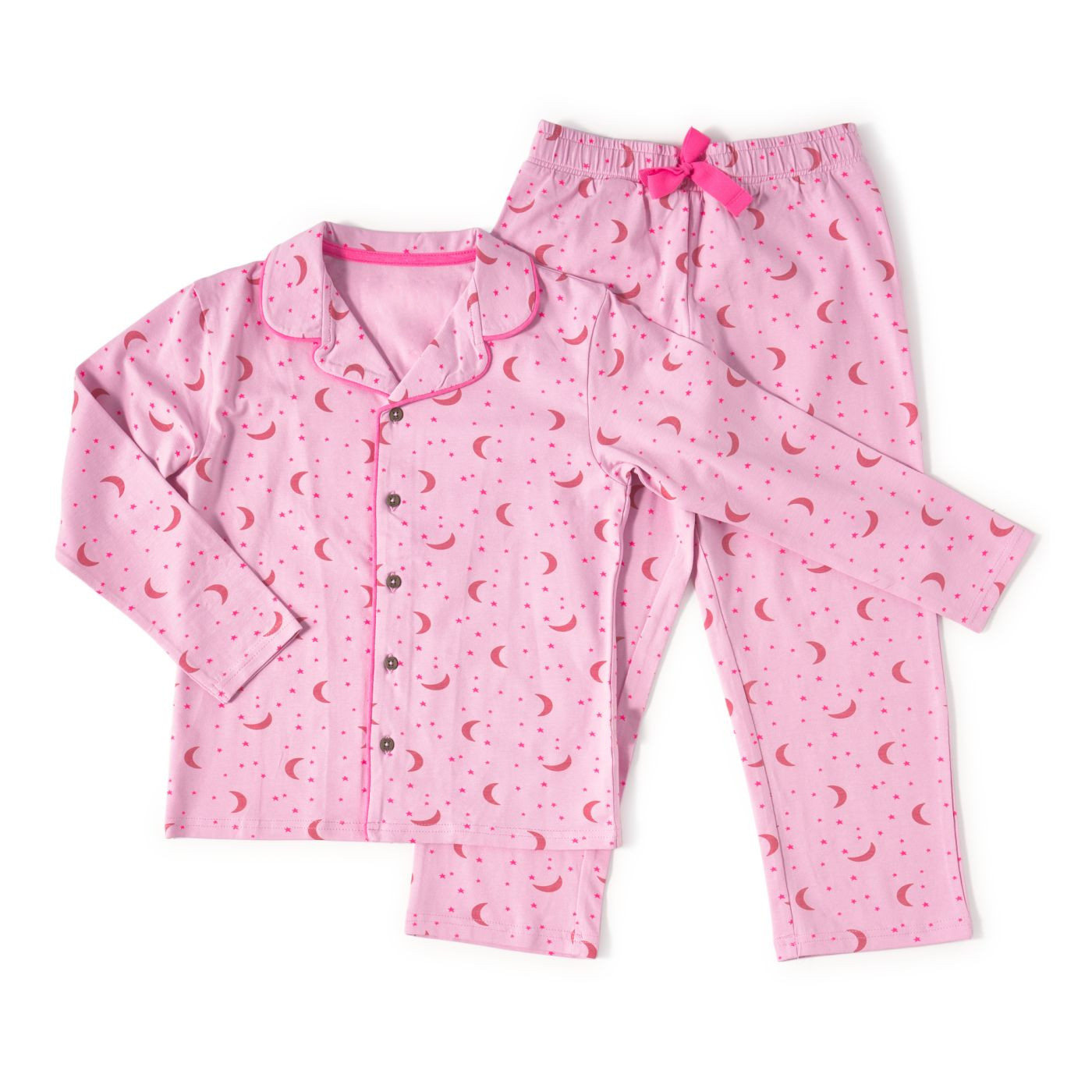 Wrap yourself in celestial comfort with the Lunar Lullaby Sleepwear Set. Adorned with playful moons and dotted stars, this pink button-down top and matching pants bring charm to bedtime. Soft cotton fabric and a pop of pink at the collar and waistband ribbon make it both cute and comfy for a dreamy night’s sleep.