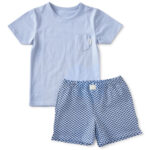 Soft, simple, and ready for sweet dreams, the Morning Sky Sleepwear Set pairs a light blue pocket tee with patterned shorts in a cool chevron print.