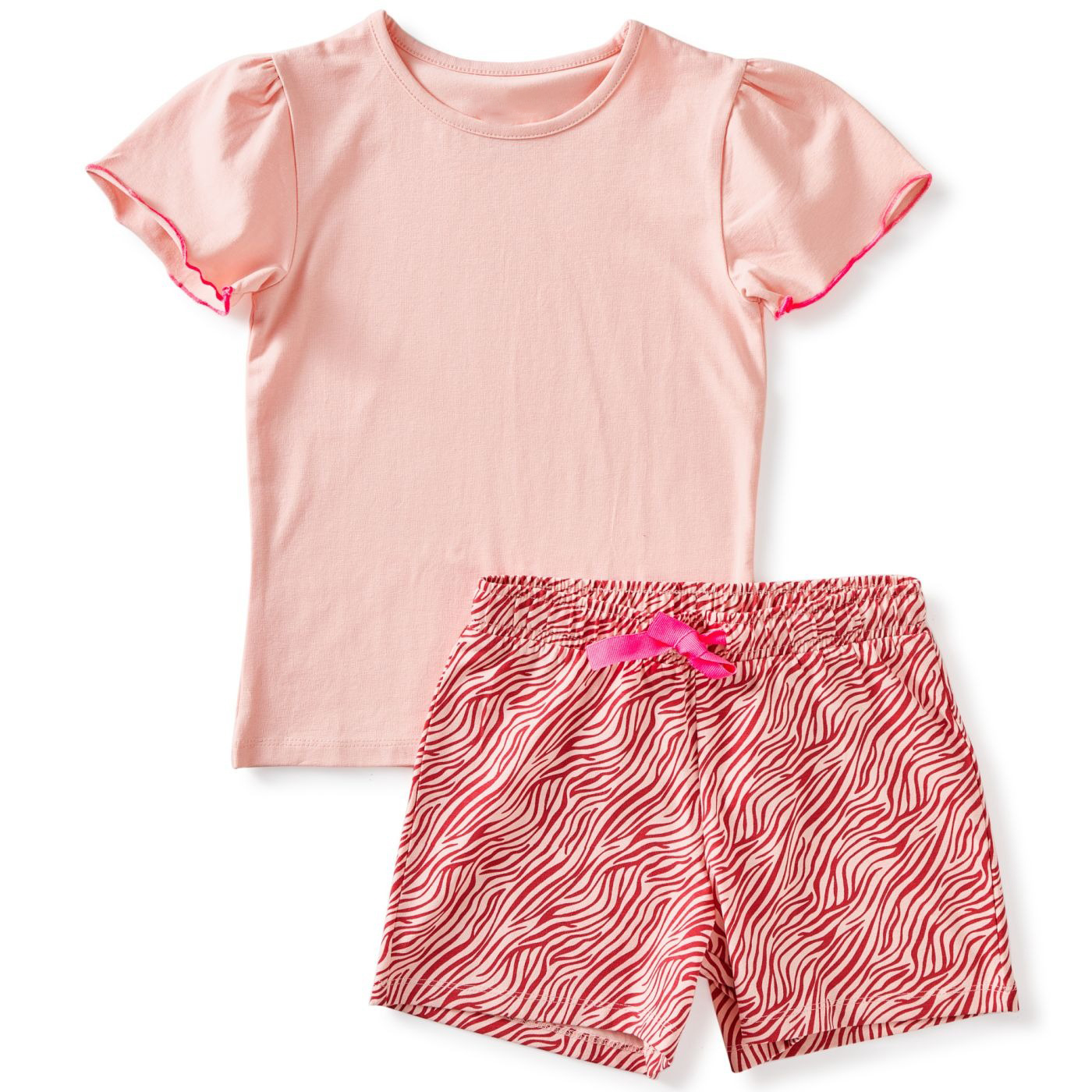 Soft blush meets wild flair in the Pink Safari Dreams Sleepwear Set. Featuring a flutter-sleeve top and zebra-inspired shorts with a pop of fuchsia bow, it’s perfect for adventurous dreamers and cozy nights alike.