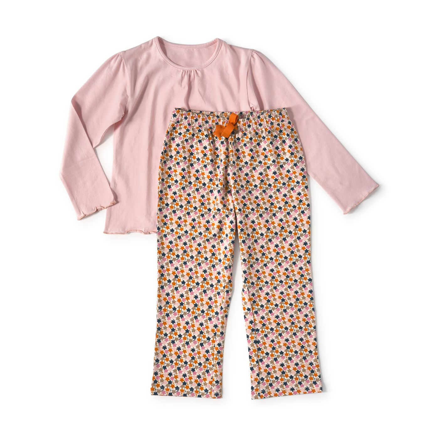 A sweet blend of soft and playful, the Starlight Meadow Sleepwear Set pairs a gentle pink long-sleeve top with vibrant star-patterned pants in earthy hues of orange, navy, and blush. Finished with a cheerful orange bow, this cozy set brings fun and warmth to every dreamy night.